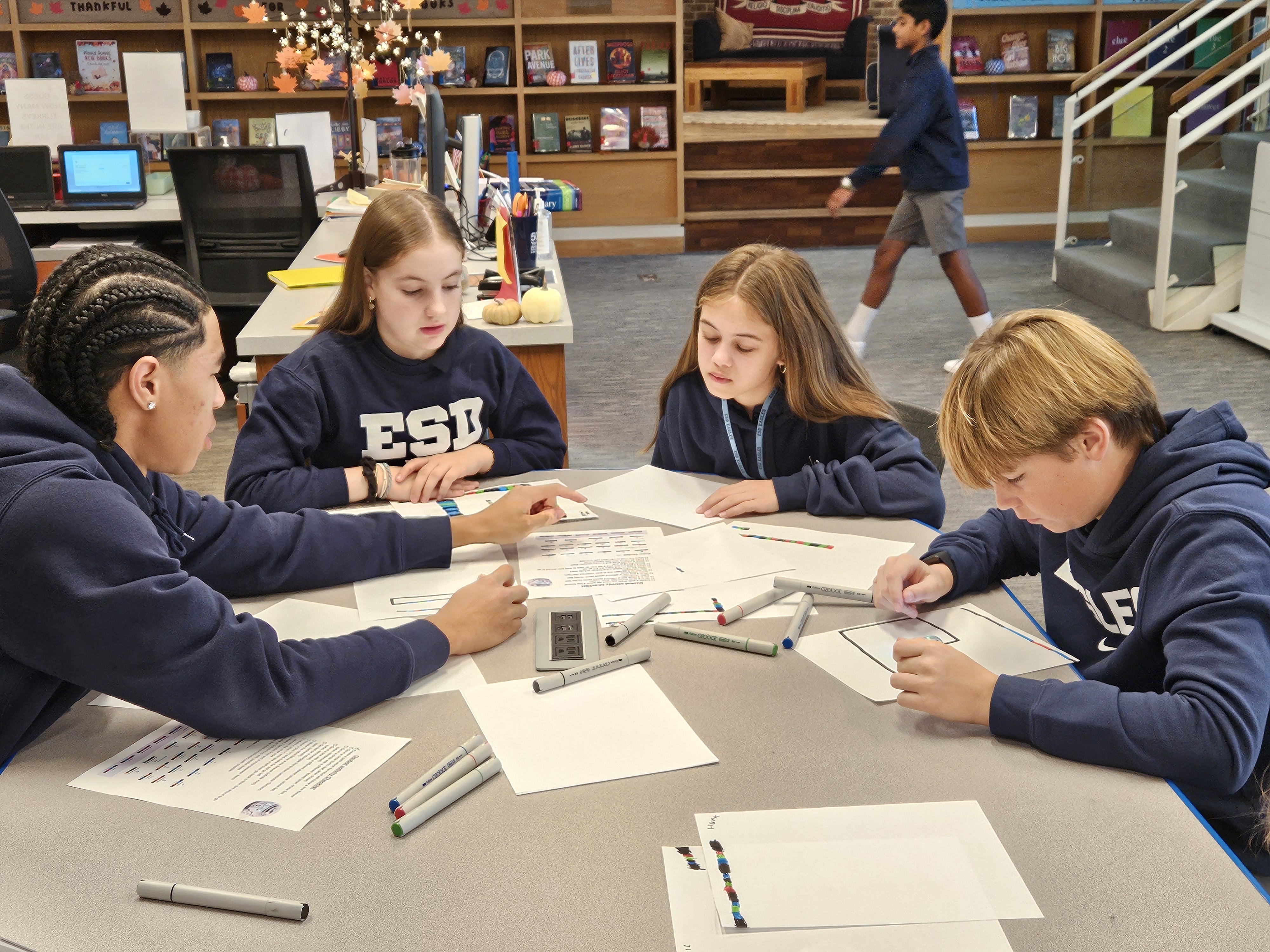 Middle School librarian Debbie Sellars, who manages the morning library programming, noted that peer-to-peer instruction has been highly effective, covering a variety of topics, from literacy to science, during the morning sessions.