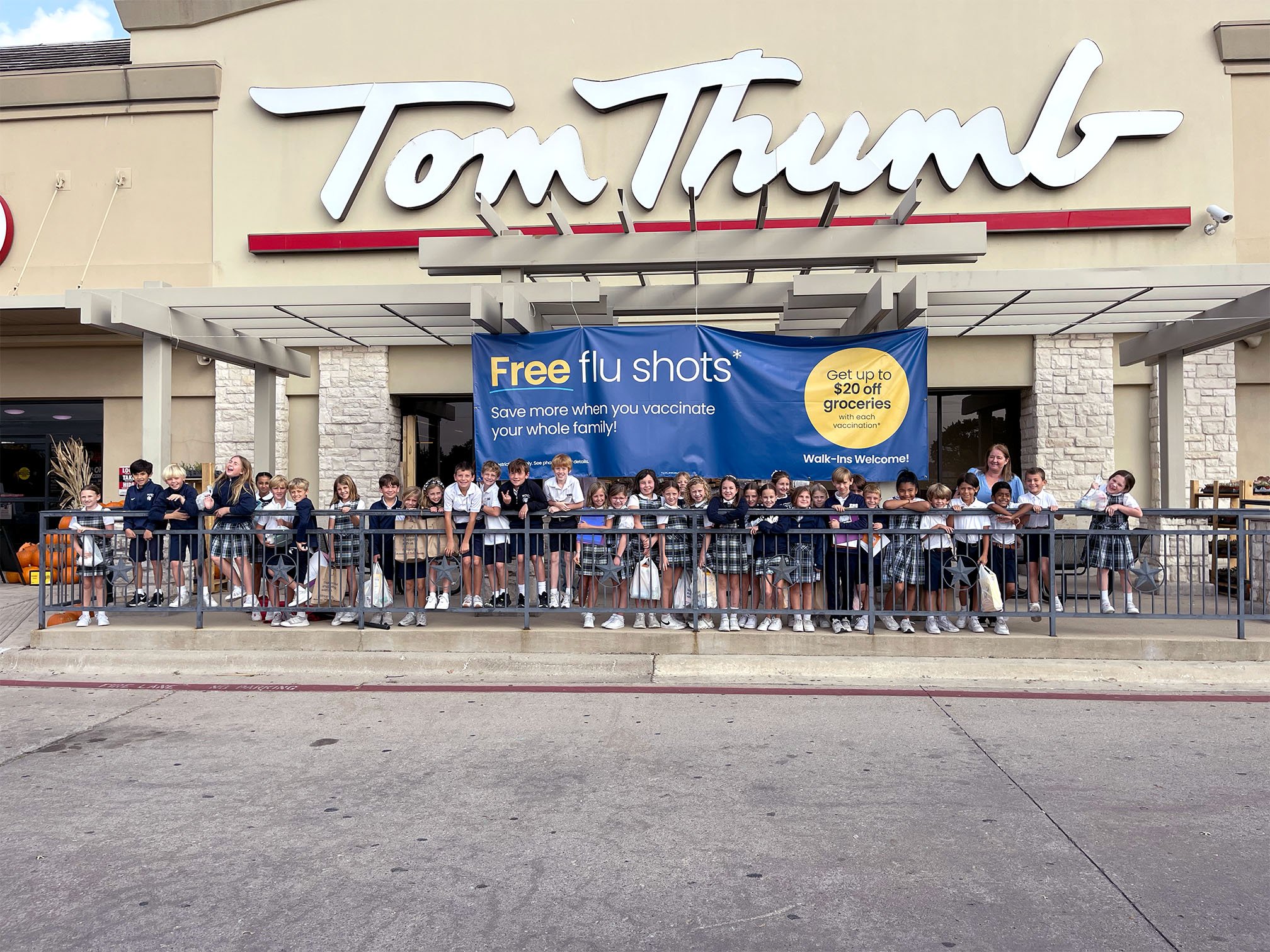 The third graders took their classroom learning on the road with a visit to Tom Thumb, where they put their studies on food scarcity and economics into action. Armed with a $14 budget, students were challenged to shop for three nutritious, nonperishable meals and a snack to feed a family of four, all while staying within their spending limit.